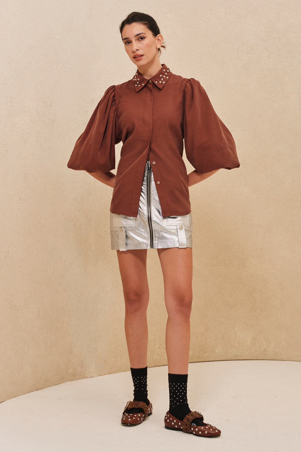 Completan el Look: : Camisa Oviedo, Ballerinas Dakota y Medias Derry.
